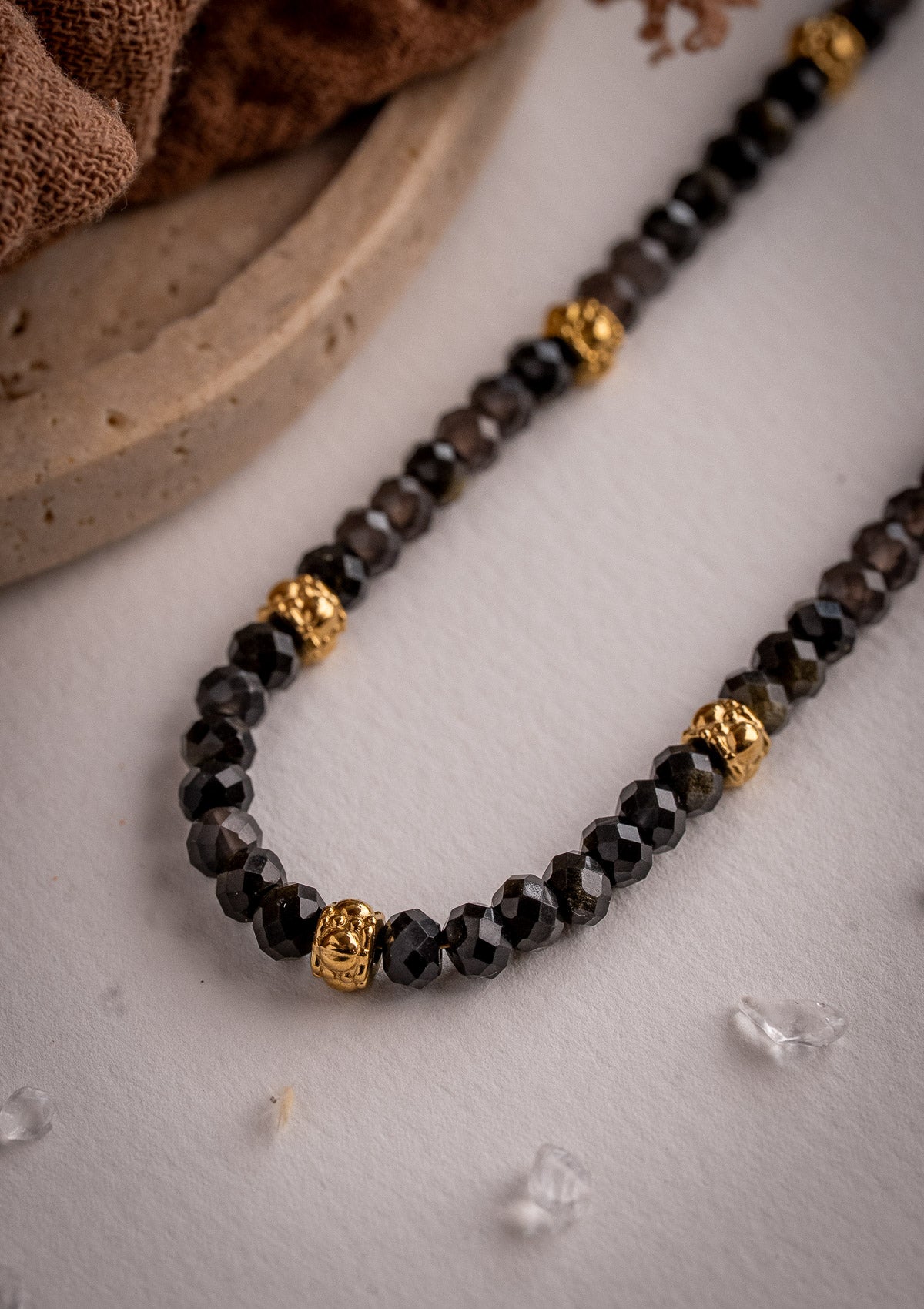 Collier Obsidienne Dorée - Bouclier Céleste