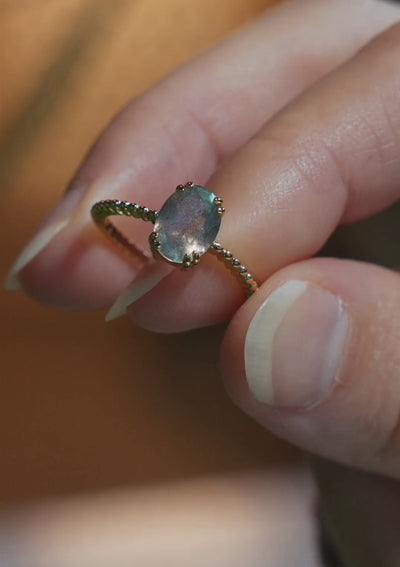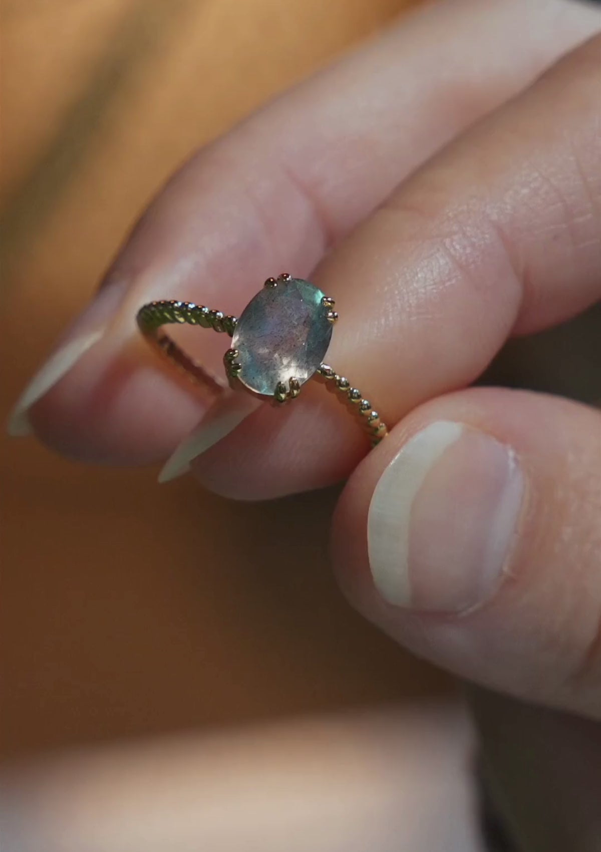 - Bague avec Labradorite ovale et mini perles décoratives.