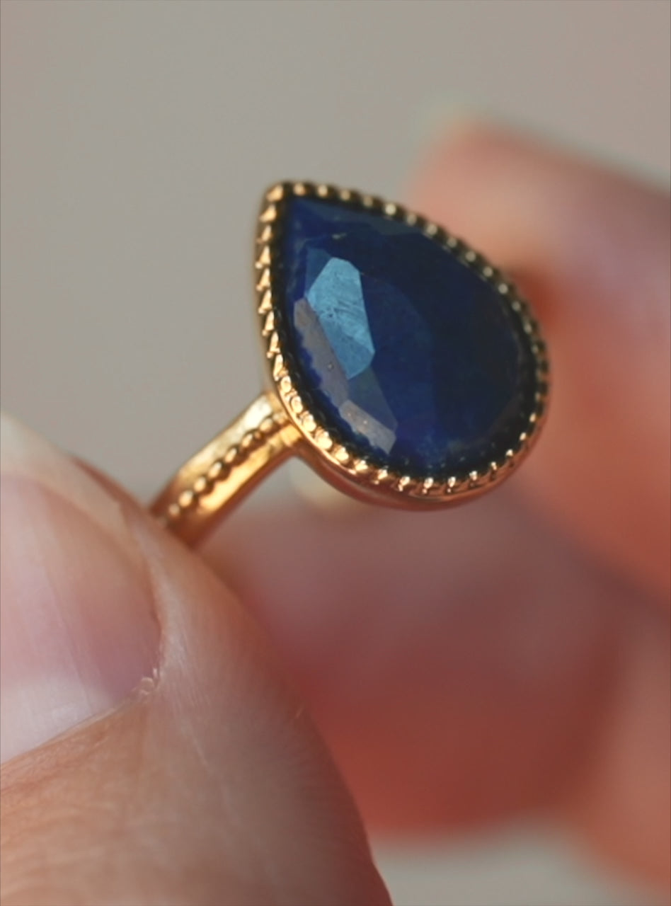 - Grande Lapis-Lazuli en forme de goutte (12 mm), sélectionné pour sa couleur bleu intense et ses inclusions naturelles ressemblant à des étoiles